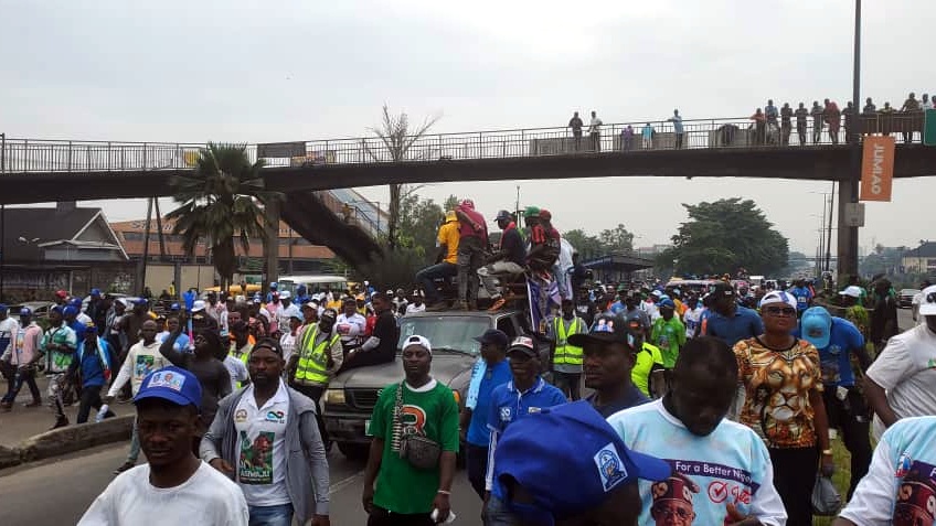 The rally terminated at Bolade, Oshodi, with fanfare at noon.