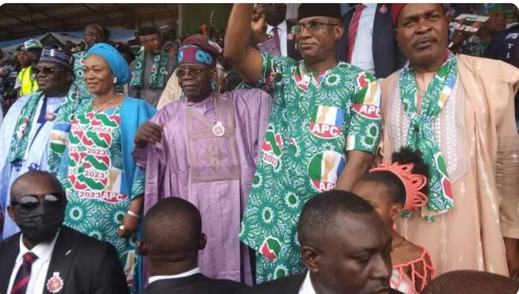 The rally, which took place at the Warri Township Stadium, was attended by Senate President, Ahmed Lawan, APC Deputy National, South, Barrister Emma Enekwu, representing National Chairman Abdullahi Adamu, the Vice Presidential candidate, Senator Kashim Shettima and his wife, Nana Shettima, and Senator Oluremi Tinubu, wife of the presidential candidate and daughter of Itsekiriland.