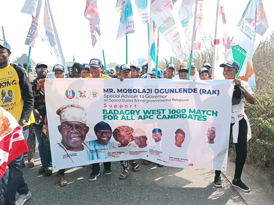 As part of his activities to sensitize the residents of Badagry West, the Special Adviser to Lagos State Governor on Special Duties and Intergovernmental Relations, Honourable Mobolaji Ogunlande hosted the Badagry West 1000 Match Rally for all candidates of the All Progressive Candidates (APC).