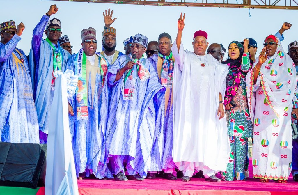 At the rally were APC National Chairman Senator Abdullahi Adamu, Senate President Senator Ahmed Lawan, Vice Presidential Candidate Kashim Shettima, Chairman Progressive Governors’ Forum and Governor of Kebbi State Atiku Bagudu, Director-General of the Tinubu/Shettima, DG of the campaign and Governor of Plateau, Hon. Simon Lalong and many party leaders.