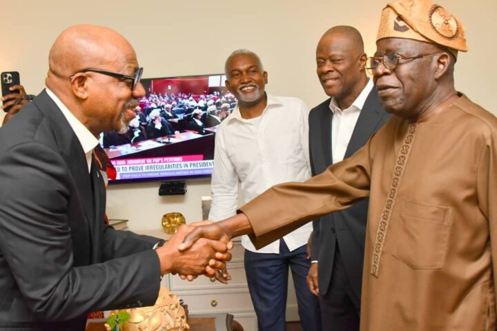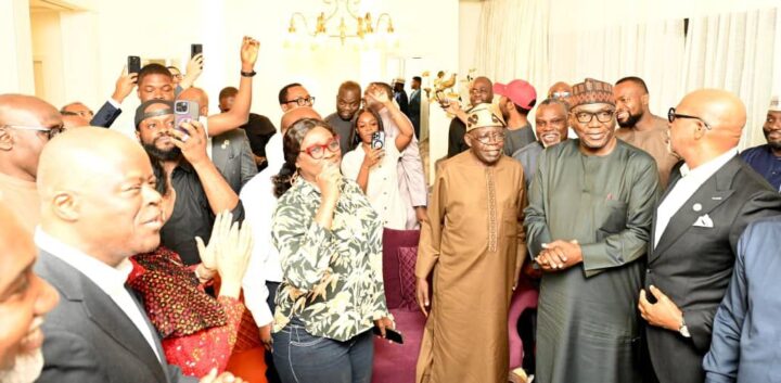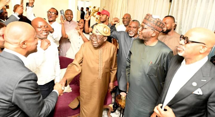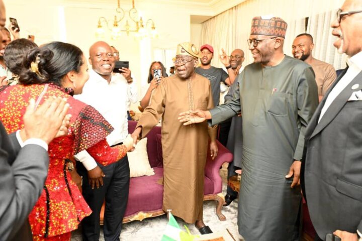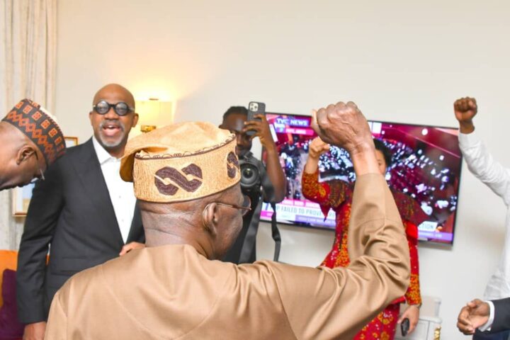 President Bola Ahmed Tinubu with the Members of the delegation to the G20 summit Celebrating the PEPT victory in India with Mr President.