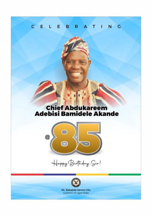 Celebrating him via his X handle on behalf of his family and the people of Lagos state, Sanwo-Olu wrote: “On behalf of my family, the government, and the people of Lagos State, I extend heartfelt congratulations to Chief Bisi Akande, ‘Baba Omo kekeke’, on his 85th birthday.