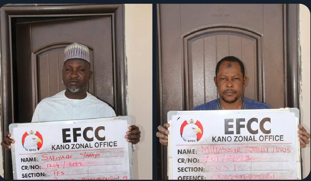 The Economic and Financial Crime Commission (EFCC) has announced the arraignment of Sufiyanu Yahaya and Mudassir Rabiu Idris before Justice Ibrahim Musa Karaye of the Kano State High Court.