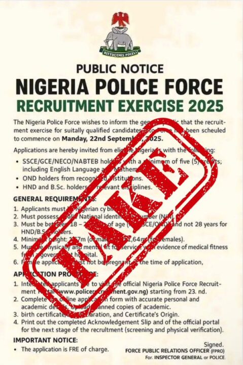 “Members of the public are strongly advised to disregard such announcements and are encouraged to verify any information relating to the Nigeria Police Force through our official website and verified social media platforms.